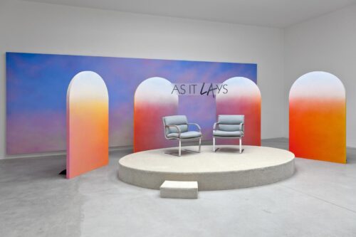 Alex Israel transforms summer into a cinematic brand. His installations, featuring oversized UV-tinted “Lenses,” gradient-painted sky backdrops, and sculptural beach props, turn the gallery into an immersive fantasy of Los Angeles leisure. The effect is deliberately artificial—everything is glossy, staged, and larger than life. It’s summer as a cultural product: the dream sold on postcards and movie screens, distilled into shapes and colors you can almost step inside. Here, you read my blog about Alex collaboration with Louis Vuitton (and its London store opening).