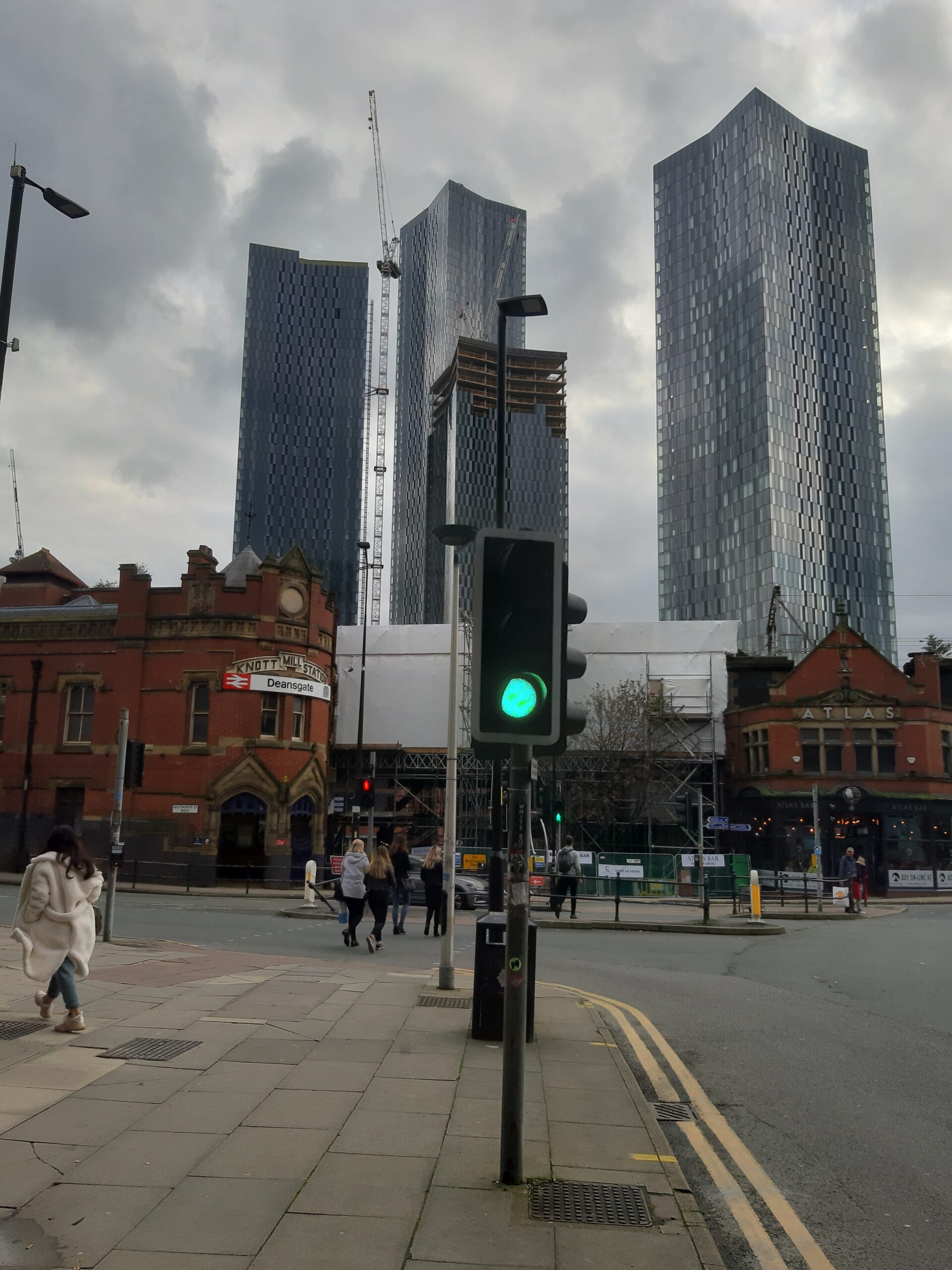 A few years ago, I spent three amazing autumn days in Manchester during Halloween, and honestly, it still feels like one of those trips that stays in your heart forever. Manchester is such a cool mix — super dynamic and full of young vibes, but also really calm and safe. You feel the energy everywhere, but somehow you also feel relaxed at the same time. It’s a student city, so you constantly see groups of young people hanging out, laughing, going to cafes, bars, gigs. It feels alive without being stressful, and that’s something I really loved.